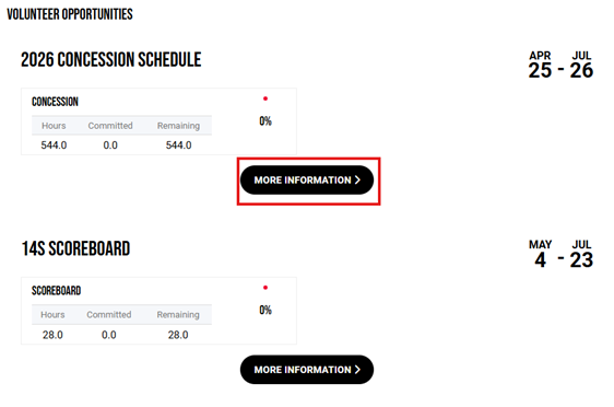 The information below is provided as a guide to view and claim any available concession stand shifts in order to fulfill your family requirement.