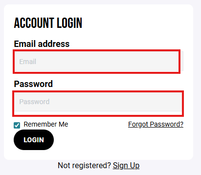 Enter the email address and password used to sign in to the Crossbar app on your mobile device and select "Login"